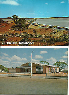 Two Postcards - Norseman, Western Australia - Causeway & New Town Hall