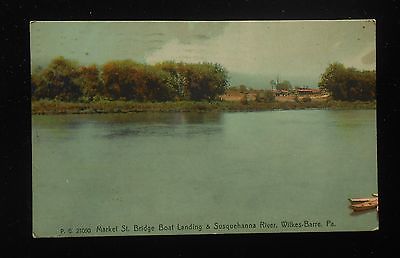 1911 Postcard Market St. Bridge Boat Landing Susquehanna River Wilkes-Barre PA