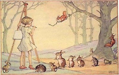 Molly Brett Postcard Which Shall I Sketch Medici Child Hedgehog Mice Squirrel