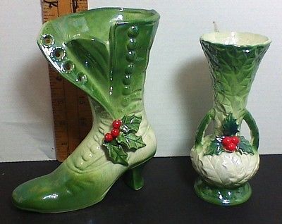 Title (ebay affiliate link): CHRISTMAS CERAMIC BOOT VASE AND REGULAR VASE PAIR