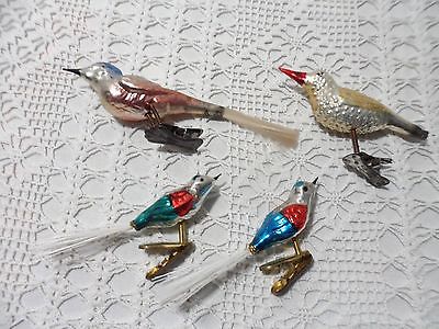 4-Vintage Mercury GLASS Bird Clip on Ornaments-ONE GERMANY