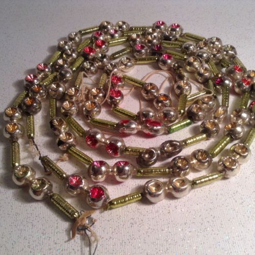 Title (ebay affiliate link): Vtg Mercury Glass Bead Garland Indents Christmas Feather Tree Green Silver Pink