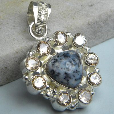 ANTIQUE LOOK Dendrite Opal,Quartz Silver Pendant