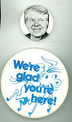 2 Vintage 1976 President Jimmy Carter Political Convention Pinback Buttons