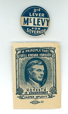 Vintage 1936 Socialist Governor McLevy Political Pinback Button & Poster Stamp