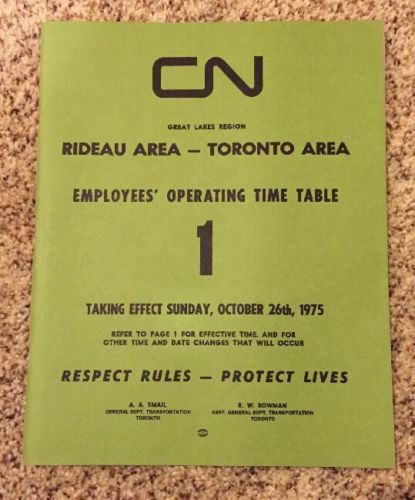 Title (ebay affiliate link): Canadian National Time Table Rideau Area Toronto Area 10/26/75