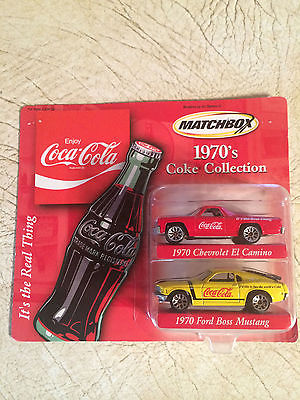 Title (ebay affiliate link): 2001 Mattel Inc. , Matchbox " 1970's Coke Collection " 1970 El Camino & Mustang