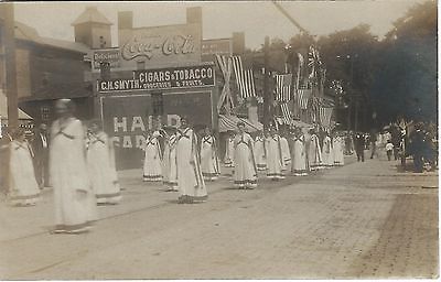 RPPC 1906 Auburn New York High School Students Parade Coca Cola Sign Main St NY
