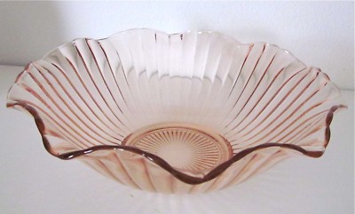 Vintage Large Pink Ribbed Depression Glass Bowl