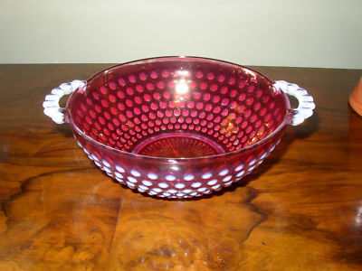 ANCHOR HOCKING MOONSTONE CRANBERRY FLASH BOWL
