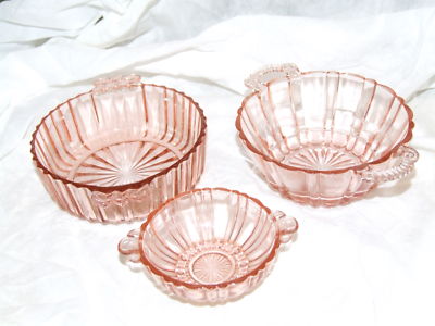 Three Pink Depression Glass Bowls