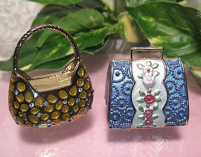 2 Enamel Rhinestone Purse Handbag Trinket Box Boxes Lot