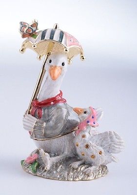 Title (ebay affiliate link): Duck & Baby Trinket box by Keren Kopal Austrian Crystal Jewelry box Faberge