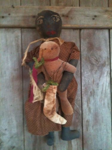 Title (ebay affiliate link): Primitive folk art doll with her stocking brown calico Gingerbread christmas