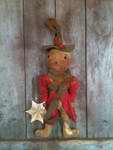 Title (ebay affiliate link): Primitive 20" snowman snowflake Vintage wool scarf doll grungy Christmas