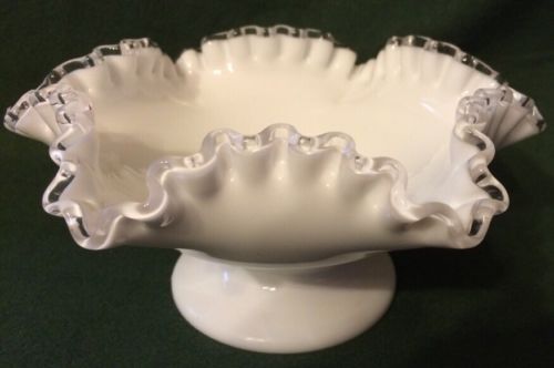SILVERCREST WHITE MILK GLASS FOOTED BOWL RUFFLED FENTON
