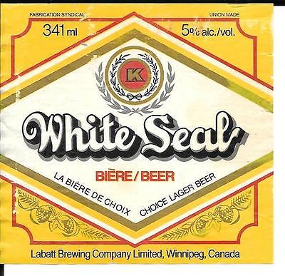 WHITE SEAL BEER 341 ML BEER LABEL LABATT BREWING CO LTD WINNIPEG CANADA