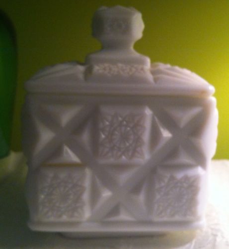 Title (ebay affiliate link): VINTAGE WESTMORELAND MILK GLASS CANDY DISH IN OLD QUILT PATTERN