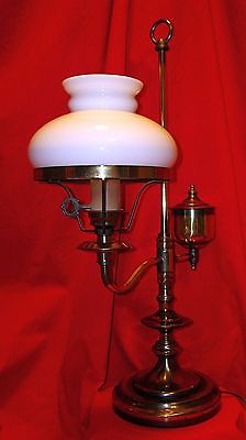 Brass with milk glass shade faux oil student desk lamp