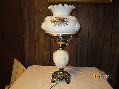 VIntage White Milk Glass Lamp with Flowers 17" High to Top of Globe L&LWMC 1970