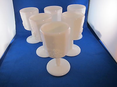 Vintage Set of 6 Milk Glass Goblets Grape Pattern 6" tall 3" diameter