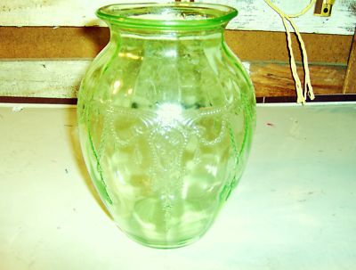 NICE 8" TALL GREEN DEPRESSION VASELINE GLASS VASE