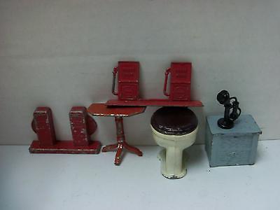 Tootsie toy & midge toy lot 2 gas pumps 3 legged stand dresser phone & toilet