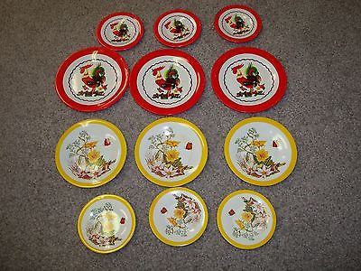Childs Vintage Tin Dishes Roosters, Flowers, and Butterflies 12 pieces in all