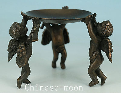 Asian Chinese Old Bronze Hand Carved Three Angel Oil Lamp Statue Collectables