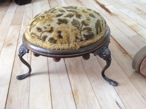 Title (ebay affiliate link): ANTIQUE VICTORIAN FOOTSTOOL with 3 Cast Iron Legs