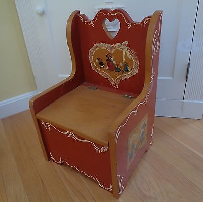 Title (ebay affiliate link): Antique/ Vintage Wood CHILD'S CHAIR w/Storage Seat~ Signed HAND PAINTED FOLK ART