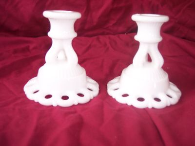 MILK GLASS CANDLE HOLDERS---PAIR---WESTMORELAND