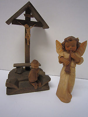 2-Vintage WOOD CARVED Figures-ANGEL & SHRINE-ANRI?
