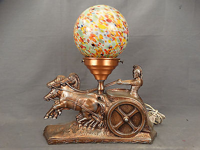 Antique ART DECO Era HORSE Drawn ROMAN CHARIOT Figural ART GLASS SHADE Old LAMP