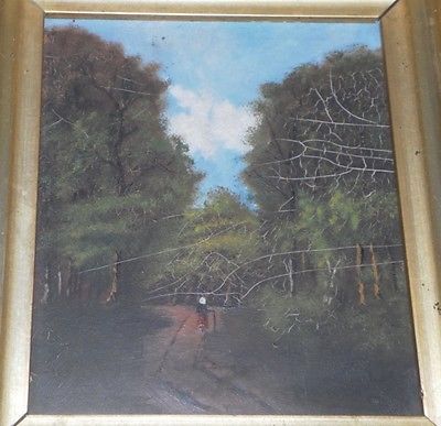 Title (ebay affiliate link): ANTIQUE PRIMITIVE Oil Painting COUNTRY LANE Path In The Woods ANTIQUE FRAME