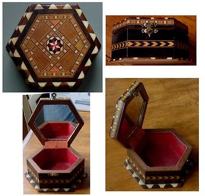 HEXAGONAL WOOD BOX WITH MIRROR AND INLAY