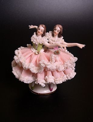 ANTIQUE OLD DRESDEN GERMANY PORCELAIN LACE TWO BALLERINAS FIGURINE for TLC