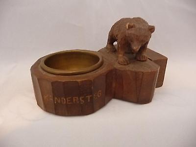 VINTAGE BLACK FOREST BEAR ASHTRAY/MATCHBOX HOLDER marked KANDERSTEG SWITZERLAND