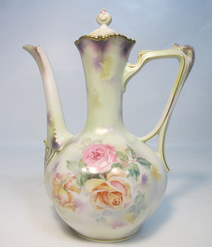 Antique c 1899 RS Prussia Porcelain Floral Rose Teapot Nice Handle Red Mark yqz