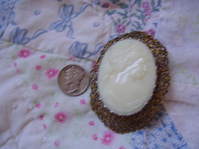 LOVELY VINTAGE WHITE MILK GLASS CAMEO PIN/BROOCH