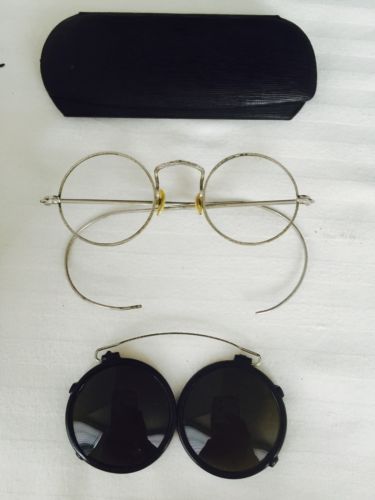 Title (ebay affiliate link): Antique WHITE METAL Silver Tone ART DECO w/ Dark Green CLIP ONs Spectacles
