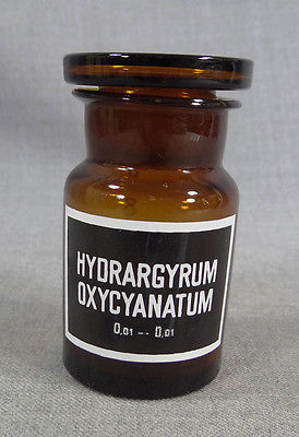 Title (ebay affiliate link): ANTIQUE APOTHECARY PHARMACY DRUG-STORE AMBER GLASS BOTTLE HYDRARGYRUM OXYCYANIDE