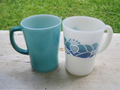 2 BLUE PYREX MILK GLASS RETRO MUGS KARTELL EAMES ERA