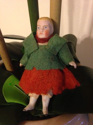 Title (ebay affiliate link): Antique 4" All Bisque Body Man Dollhouse Doll Felt Clothing Wire Jointed German?