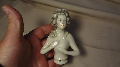 Antique Doll Figurine Vintage Porcelain Doll Pincushion Half Doll GERMANY? #62