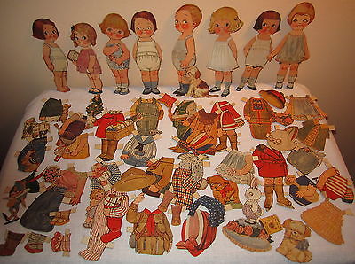 ANTIQUE VINTAGE DOLLY DINGLE PAPER DOLLS CLOTHES ACCESSORIES DOGS LOOSE