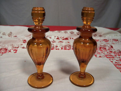 Title (ebay affiliate link): 2 VTG AMBER DEPRESSION GLASS PERFUME BOTTLES (AD 91)
