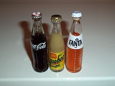 3 Mini Bottles of Soda COCA COLA, YOO-HOO Chocolate, FANTA, Miniatures