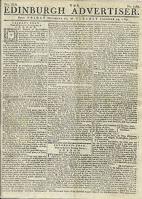 1784 Scottish paper "THE EDINBURGH ADVERTISER" December 10-14, 1784