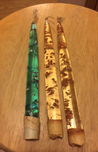 Title (ebay affiliate link): Lot Of 3 Gold Flecked Mid Century 8" Candles Clear Blue Lucite SEE